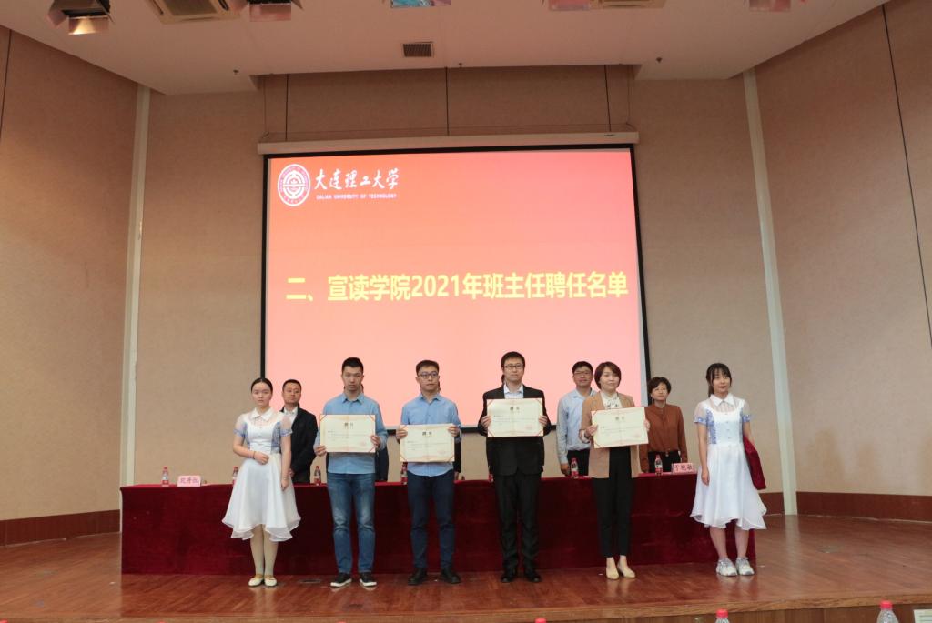 大会第一项全体起立奏唱国歌,随着国歌奏起,师生们庄严合唱。大会第二项院长赵纪军教授宣读宝威体育平台2021年班主任聘任名单,学院领导为所有新聘任专业班主任、思政班主任颁发聘书,班主任们担任起步新生们的专业指导、思想政治引领的重任。