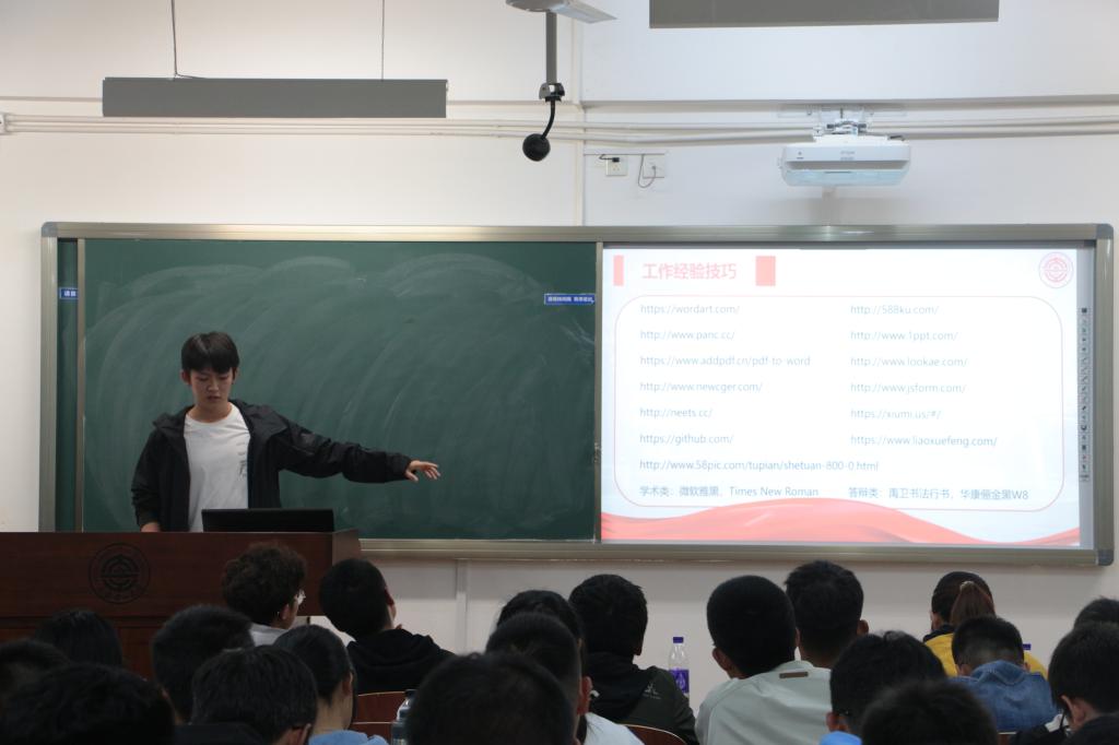 陈昱萌同学根据自己丰富的学生工作经历,向同学们介绍校团委、班级学生工作的特点,他劝诫同学们“在其位,谋其职”,担任一项工作,就要认真负责的完成。