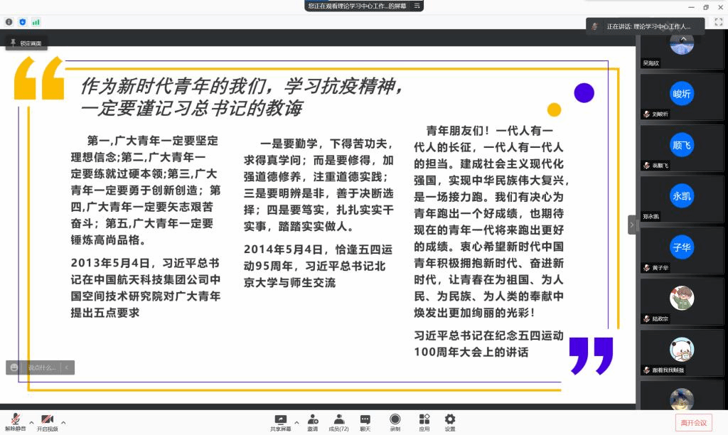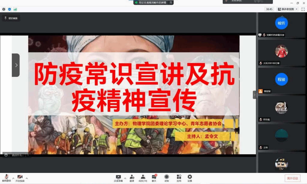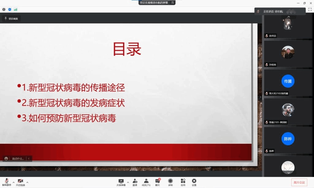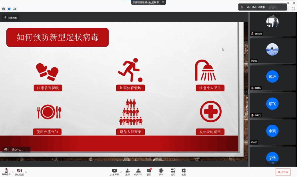 寒冬初至,疫情再次袭来,为学习防疫常识,弘扬抗疫精神,我们相约线上,召开了此次会议。本次宣讲会由来自理论宣传中心的孟令文同学主持,由邱志航同学和刘泽璇同学分别进行了宣讲,参加本次宣讲的还有宝威体育平台大一全体同学。