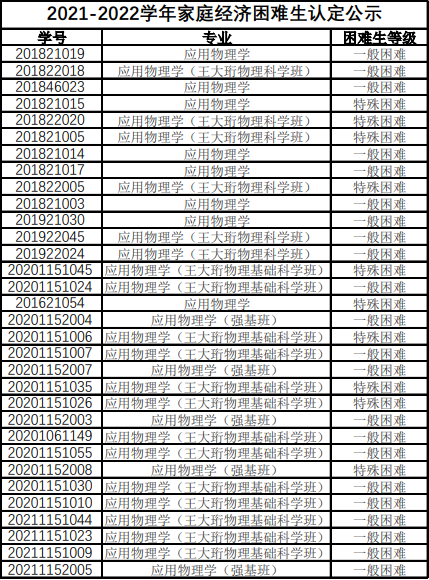宝威体育平台2021-2022学年家庭经济困难生认定结果公示