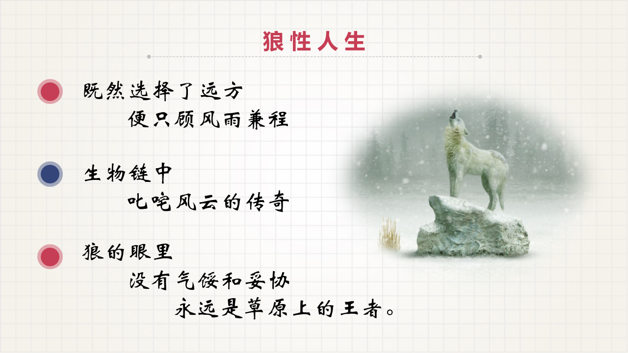 狼性的热爱生命和万丈豪情,交融成笑傲生活的狼魂。